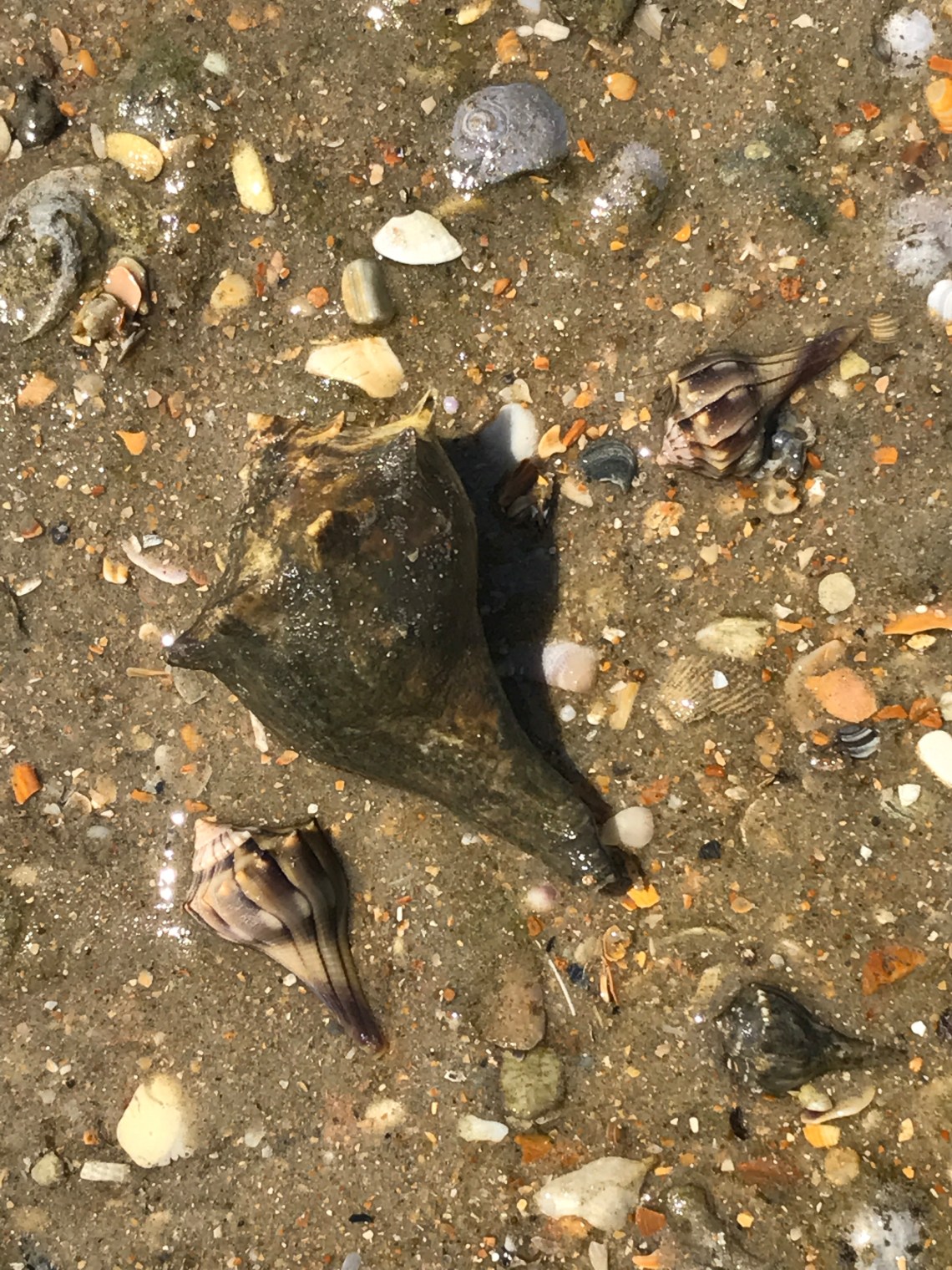 Very warm, breezy day on the Banks today. My shore rotation was at low tide, watched some baby whelk crawling at the water’s edge. Here’s a picture of them, the summer kitchen, and a few more pictures from my morning shore patrol.